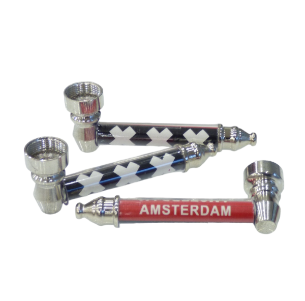 Pipe in metallo/plastica dalla forma originale ed intrigante con richiamo all’Olanda. Lunghezza indicativa 7 cm